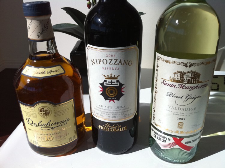 Dalwhinnie, Nippzzano chianti, Santa Margherita Pinot Grigio