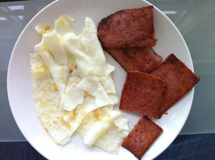 2. LOL! You wouldn’t by chance have eaten at my house growing up would you? We ate spam all the time, which probably explains why I am a health fitness professional now. I have to say I agree with balsa, a bit of irony to skip the yolks when you have a side of spam. But hey, I guess you have to make sacrifices somewhere.