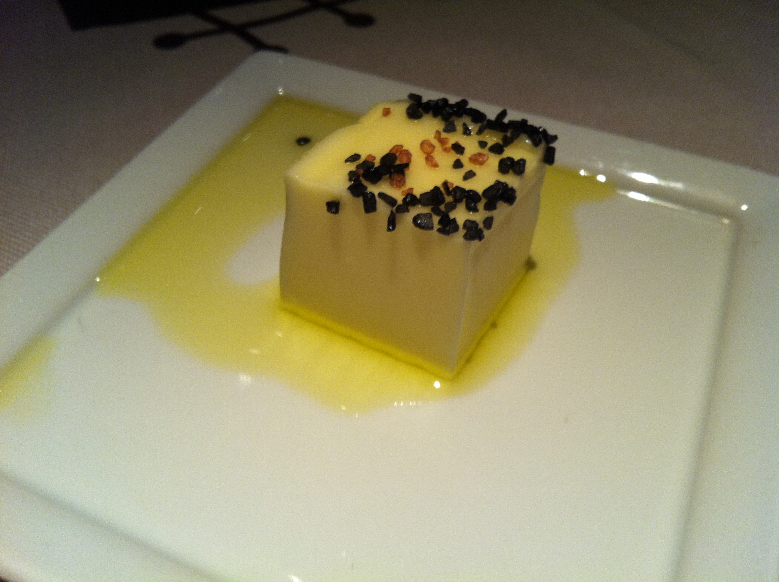 Kinda looks like flan with little mouse pellets on it. 🙂