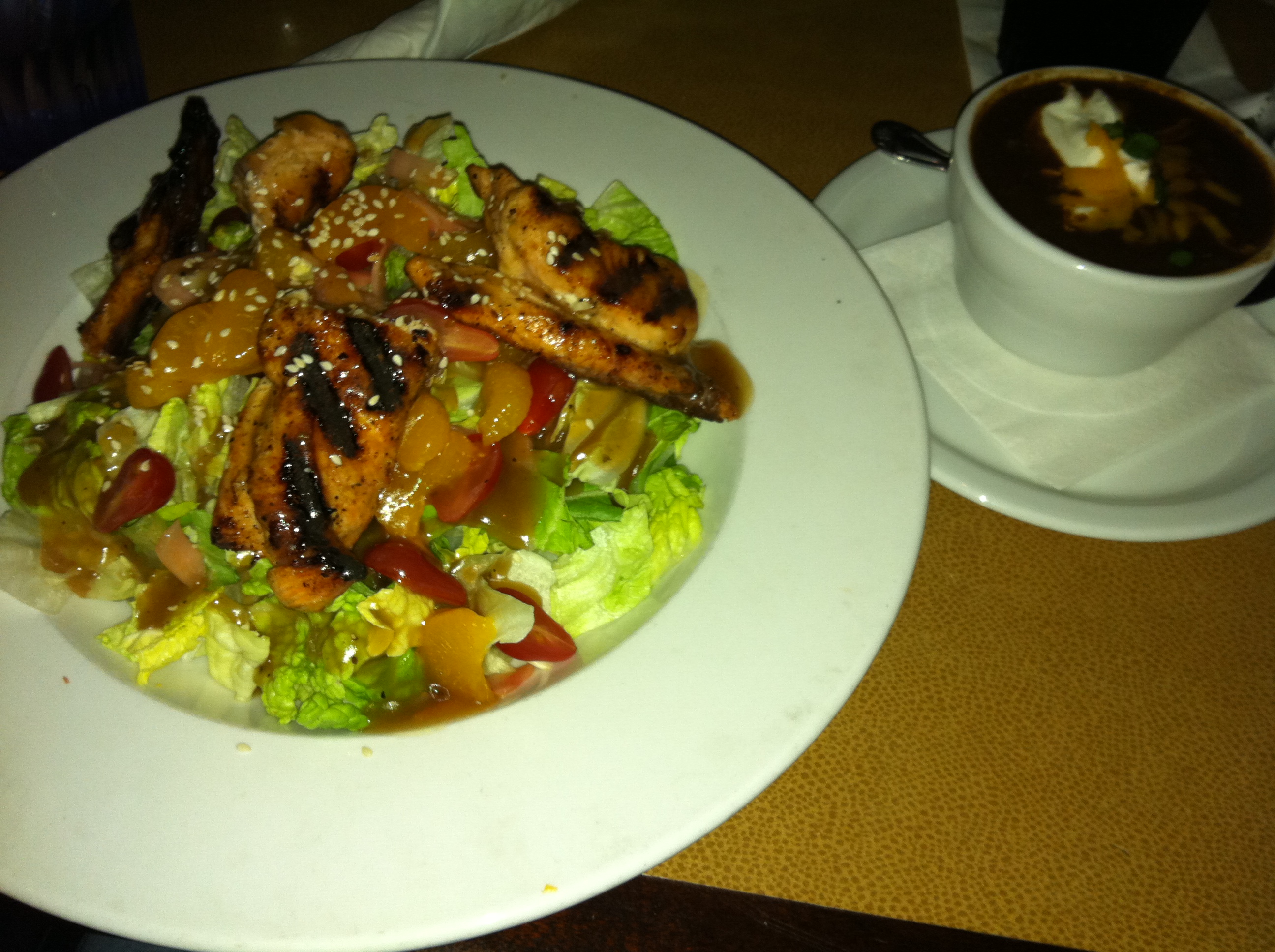 Salmon salad and chili